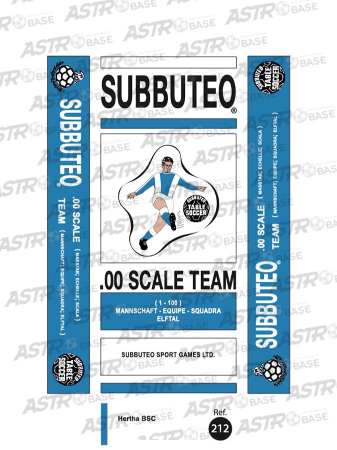 | Squadre replica Subbuteo 1 - 359 | Squadra + 2 riserve e portierino in KIT UGUALE AL PORTIERE SU ASTA – in SCATOLA REPLICA COLORATA (sul coperchio omino – Ref. e nome del team contenuto), Squadra + 2 riserve e portierino in KIT UGUALE AL PORTIERE SU ASTA in scatola Soccer 3D HW, Squadra + 2 riserve e portierino in KIT UGUALE AL PORTIERE SU ASTA in SCATOLA VERDE REPLICA SUBBUTEO anni 70, Squadra in scatola REPLICA COLORATA (sul coperchio omino – Ref e nome del team contenuto), Squadra in scatola Soccer 3D HW, Squadra In Scatola Verde Replica SUBBUTEO anni 70 |